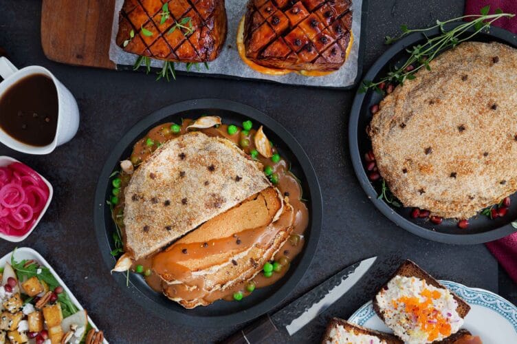 Maukkaasta kylmäsavutofusta syntyy joulupöytään mehevä gluteeniton tofukinkku, joka maistuu myös lihansyöjille.